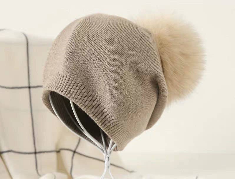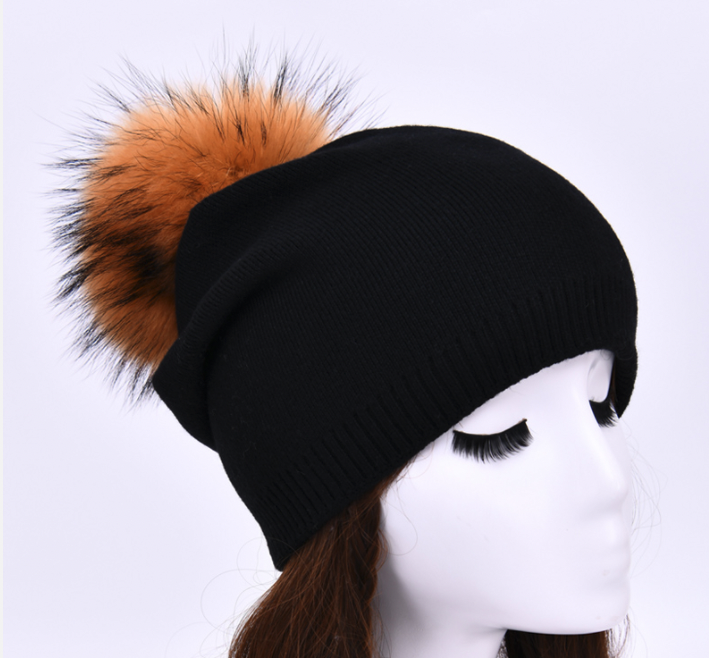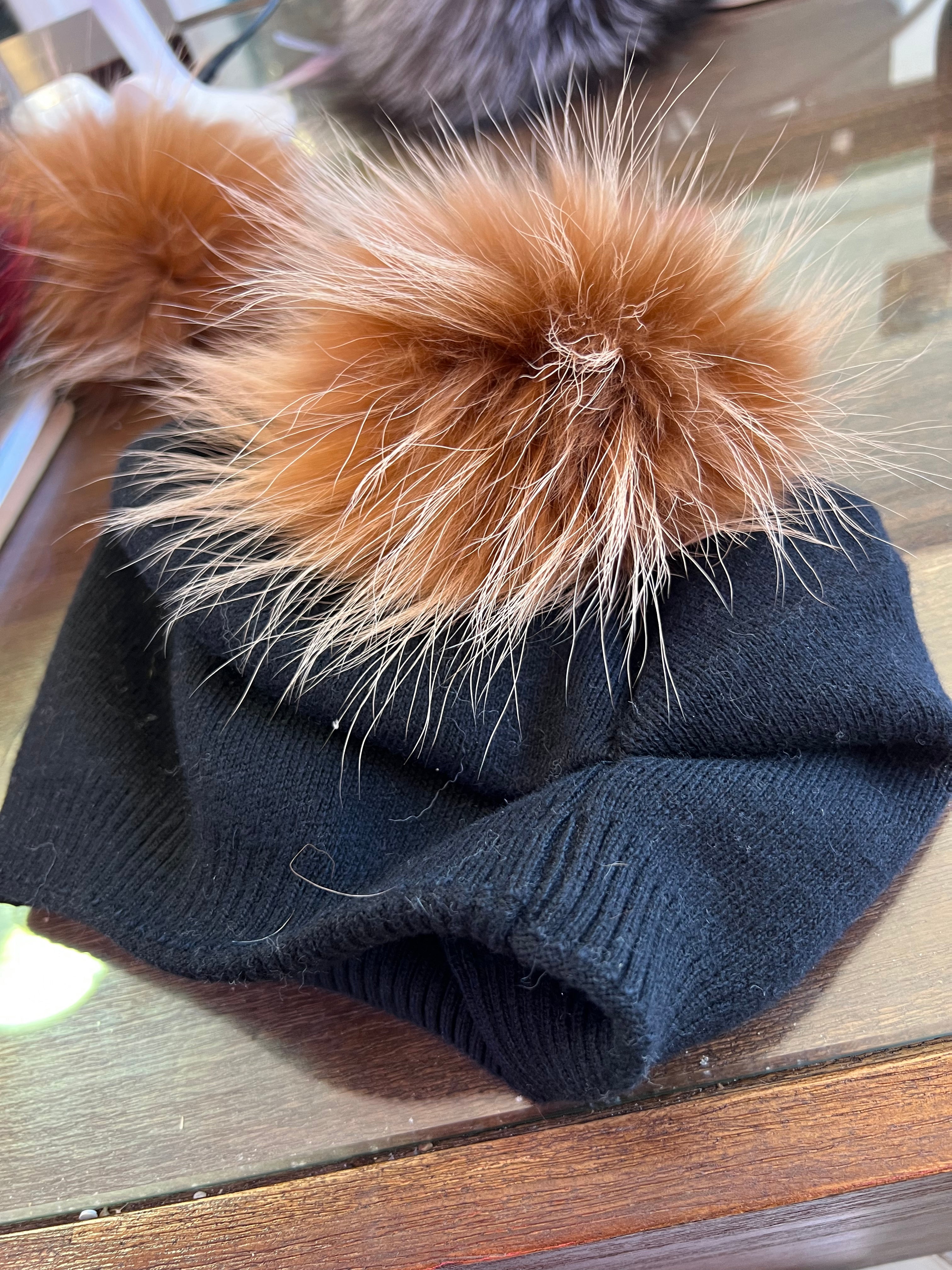 New, Wool Beanie Hat With Real Fur Pom Pom, Beanie Hat