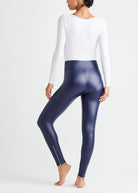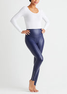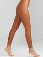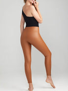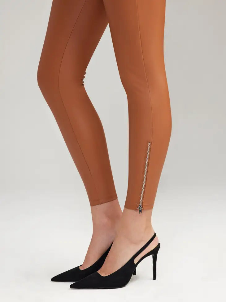This high-quality and flattering Yummie Faux Leather Shaping Legging is a must-have for any woman's wardrobe. With 4-way stretch faux leather fabric, a high-waisted design, and side zip detail at each ankle, you can match style and comfort. Available in Purple and Tan.