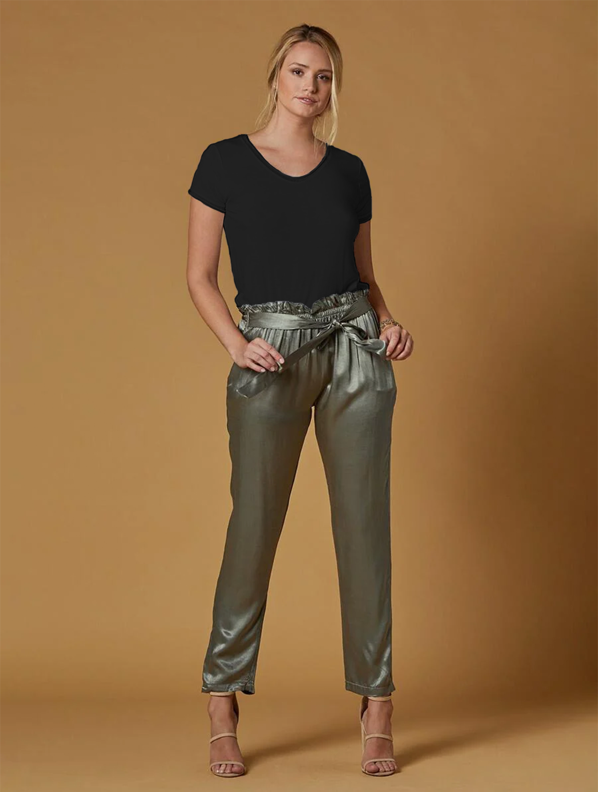The LUISA Top boasts a relaxed fit, striking the perfect balance between comfort and style. It transitions from professional settings, where it pairs flawlessly with skirts or trousers for a polished look, to casual off-duty days, where it complements jeans or shorts effortlessly. Embrace the versatility of this lightweight and soft tee, complete with its understated V-neck, and elevate your wardrobe with this essential modern piece.