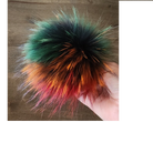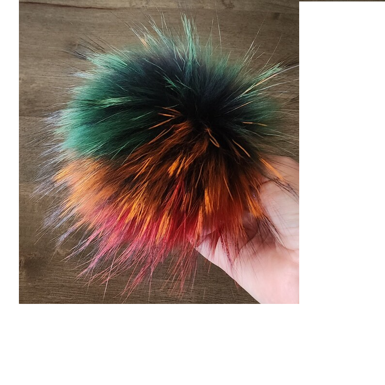 This large 6-7 inch real fur pom is made from natural raccoon fur and enhanced with green, orange, red, and purple rainbow colors. Can be added or removed from a knit beanie or as an accessory on your bag or boot with satin ribbons! This detachable and oh-so-soft puff makes it easy to swap out for alternative colors or remove for the day. Whatever your preference, everyone on the ski mountain or wherever you may go will be asking you where you got it! For the luxe at heart. Handmade. Size: 6-7"