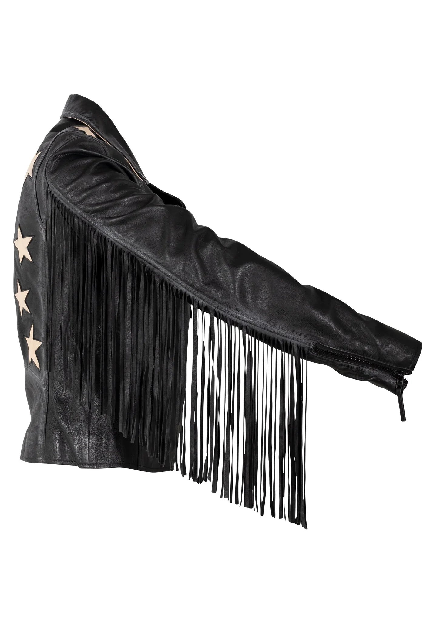 MAURITIUS CHRISSY FRINGE LEATHER JACKET WITH STAR DETAIL