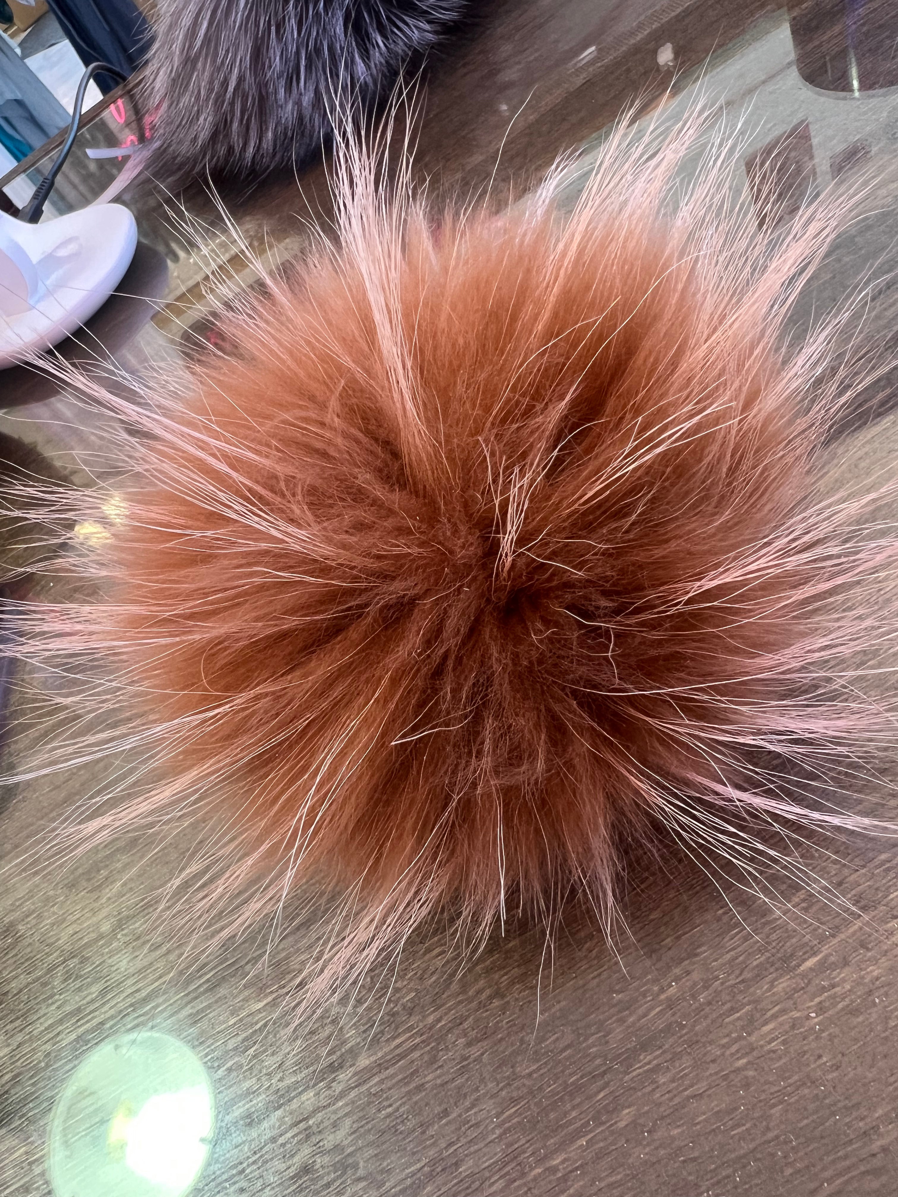 - The pompom size is measured across the fur hair ends.